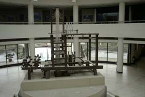 川島織物文化館発行の「織り機と裂地の歴史」には復元機の写真が載っている。西陣で復元されたものであろうか?01年3月撮影